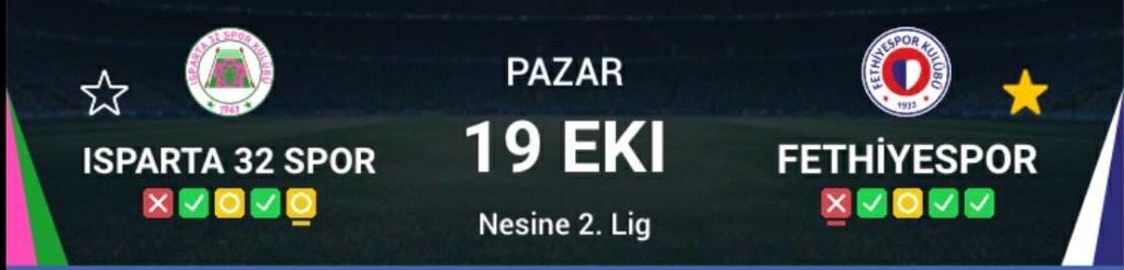 Fethiyespor will play their next match away against Isparta 32 Spor on Sunday October 19, with kick-off scheduled for 19:00.